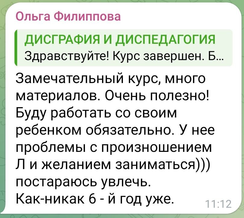 Для нашего проекта сделала курс "Дисграфия и диспедагогия".